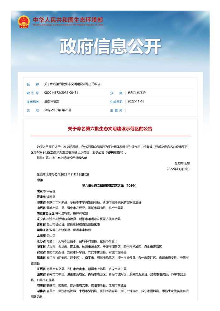 項目成效/獲獎情況:鐘祥市授予“全國第六批國家生態文明建設示范區”榮譽稱號